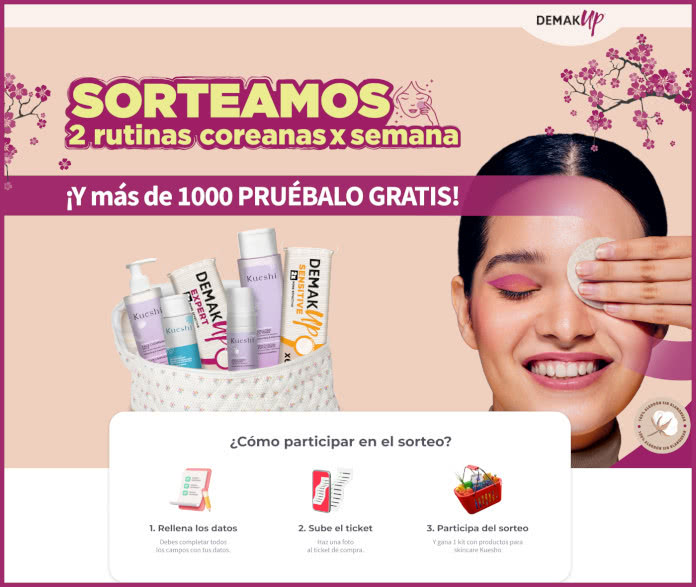 - Entra en 1.500 reembolsos de 2,05€ en Demak’Up y sorteo de 16 kits de skincare Kueshi