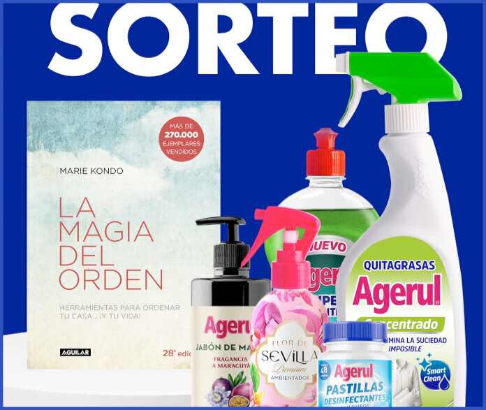 El premio es un ejemplar de “La magia del orden” de Marie Kondo + un lote de productos Agerul, que incluye:
