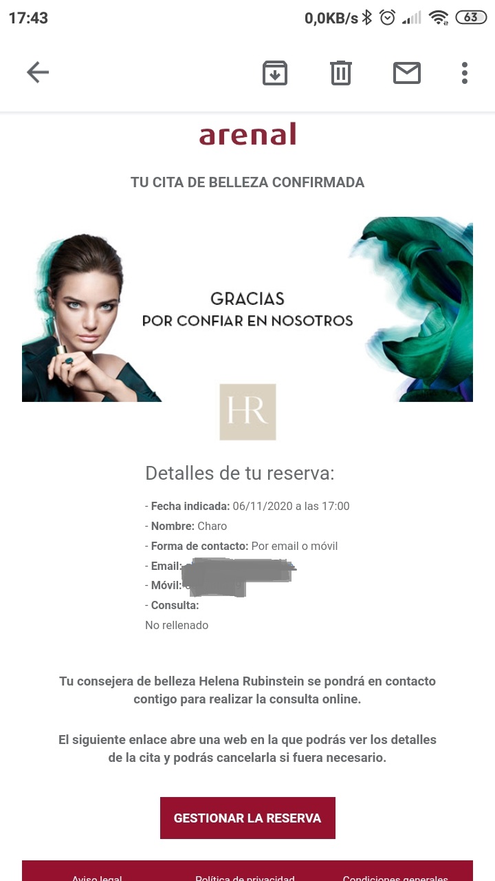 - Entra en Arenal, Asesoria Online Helena Rubinstein de 30 minutos.
