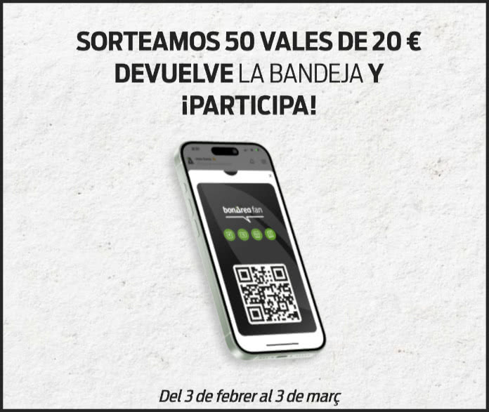 Y hay más: al devolver tu bandeja, podrás participar en el sorteo de 50 vales de 20 € en la app bonÀrea fan.