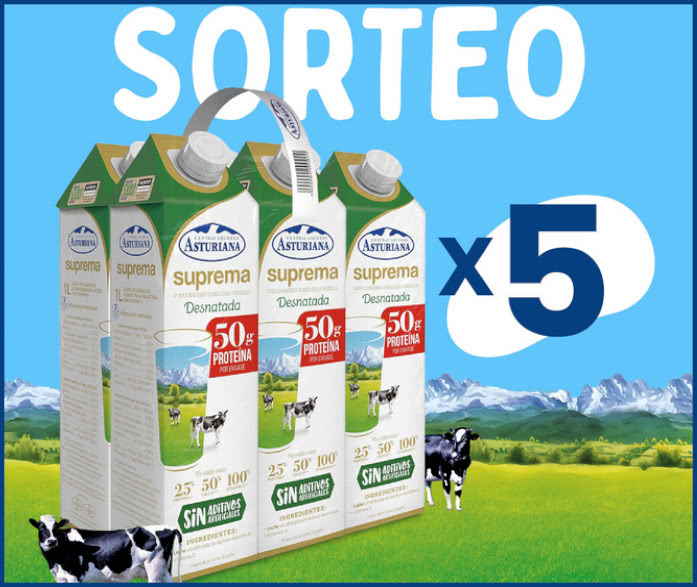 En este sorteo habrá 5 ganadores que se llevarán un pack de 6 litros de Leche Suprema de Central Lechera Asturiana.