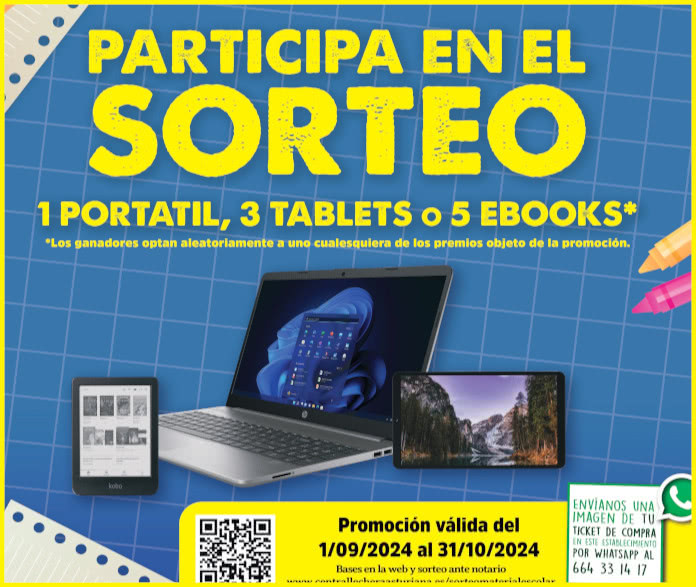 Para todos los amantes de la tecnología ya está activo el sorteo de Central Lechera Asturiana con 9 premios en juego: 1 portátil HP, 3 tablets y 5 libros electrónicos.
