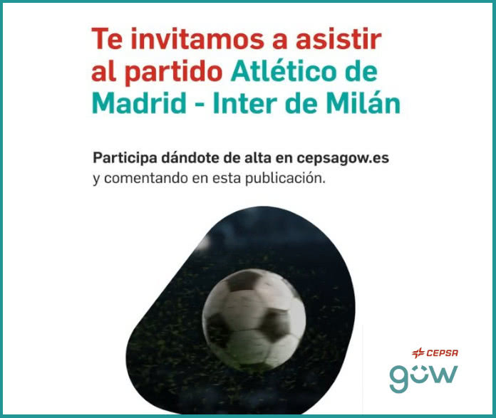 Cepsa Gow te invita a ti y a 2 amigos a asistir al partido de Atlético de Madrid – Inter de Milán, el día 13 de marzo a las 21h.