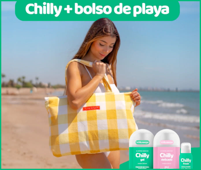 Este verano, Chilly está lanza sorteo con 2 ganadoras: cada una se llevará un bolso de playa, un neceser, un cojín inflable y un lote de geles y toallitas íntimas.