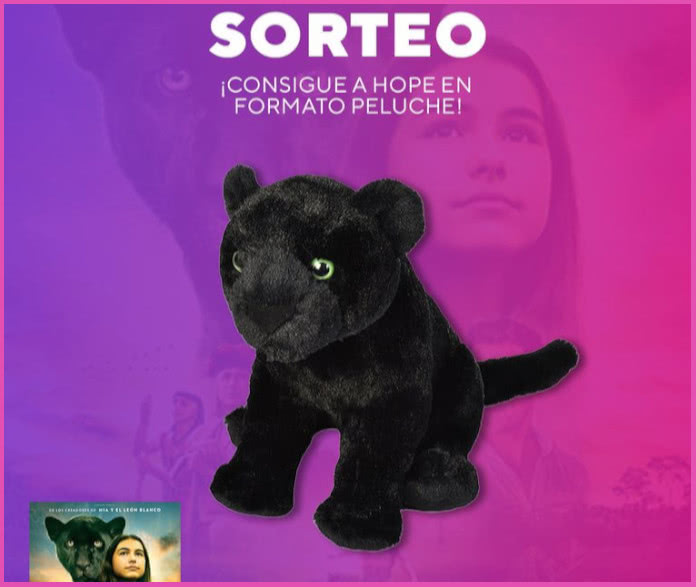 Se sortearán 5 peluches de Hope, de la película Emma y el Jaguar Negro.