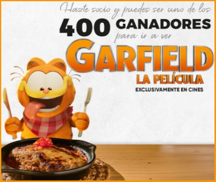 Únete a Club Pertutti para poder entrar al sorteo de 400 entradas para asistir al cine y ver la nueva película de Garfield.