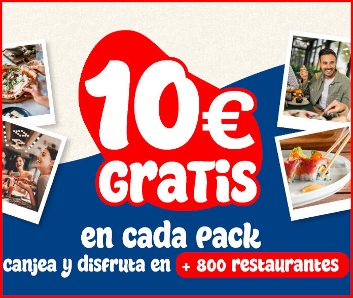Por cada compra, conseguirás 10 € convertibles en créditos para canjear por promociones gastronómicas en más de 800 restaurantes.