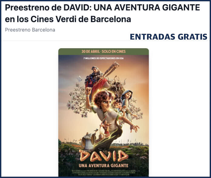 Este 22 de marzo, podrás asistir gratis al preestreno de David: una aventura gigante en Cines Verdi (Barcelona). ¡Regístrate para conseguir tus entradas!