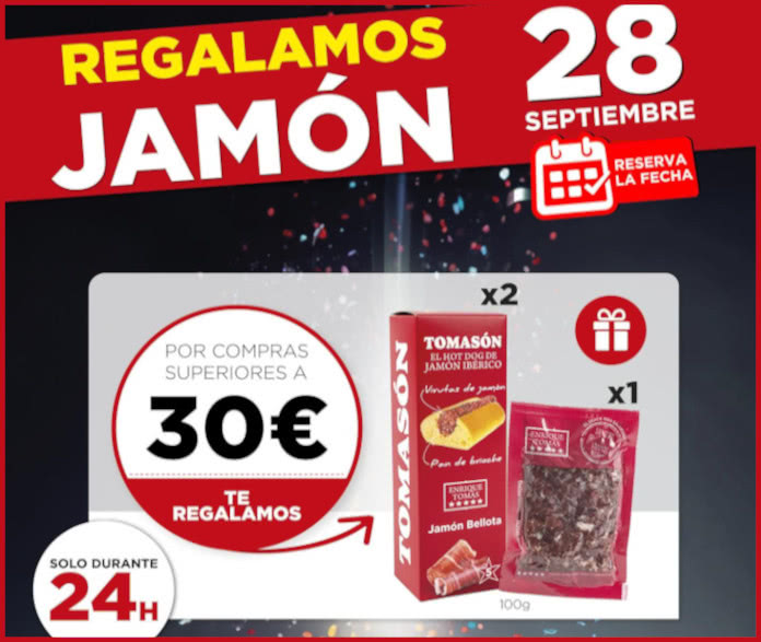 A partir de mañana 28 de septiembre, no te pierdas la promoción de Enrique Tomás porque podrás conseguir mucho jamón de cebo ibérico.