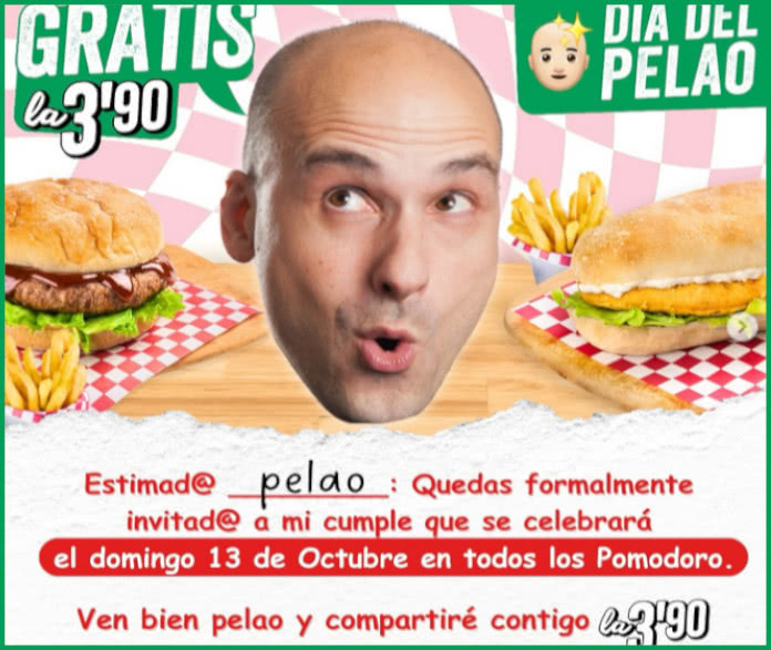 Y lo celebra en grande, todos los calvos que visiten un restaurante Pomodoro este 13 de octubre, tendrán un menú gratis.