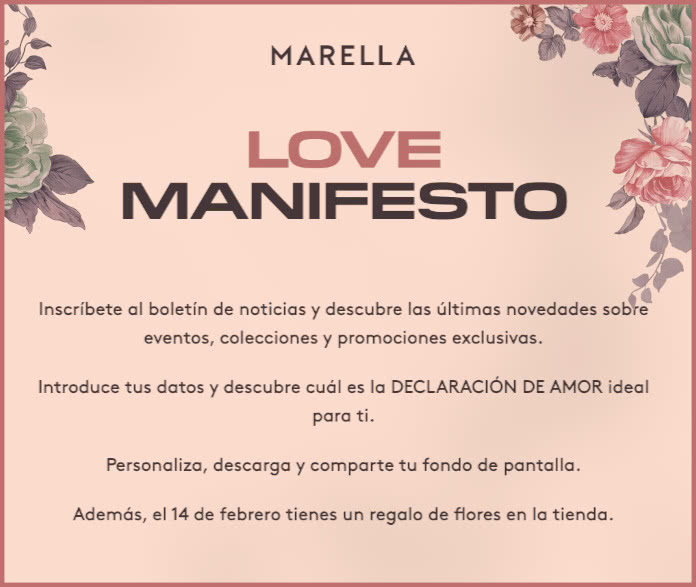 - El 14 de febrero debes visitar una tienda participante Marella para conseguir tu regalo de flores y enseñar el correo que te enviaron