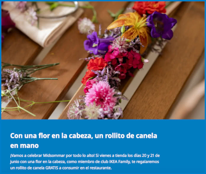 La dinámica es muy sencilla, si visitas el 20 o 21 de junio Ikea con una flor en la cabeza, conseguirás un rollito de canela gratis.