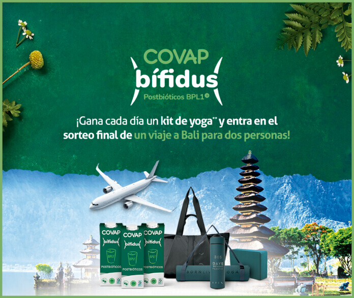 Registra tu compra de Covap Bifidus y entra al sorteo de 45 kits de yoga y un premio final de un viaje a Bali para dos personas.
