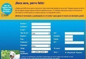 Ahora, puedes ganar seis meses de Dentastix gratis, participando en un sorteo. Para ello, lo primero que tienes que hacer es entrar en la página web de Pedigree.es en la que encontrarás el formulario de la imagen.