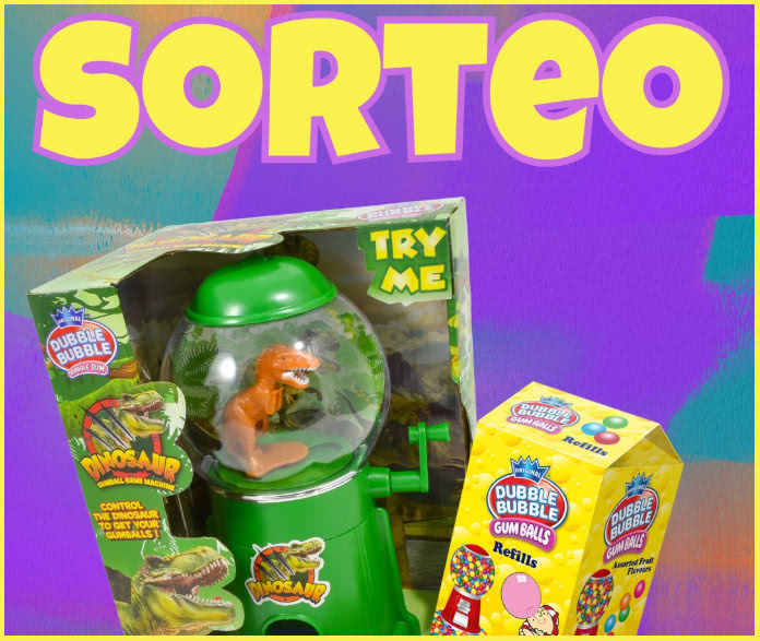 El premio de este sorteo será una máquina de chicles modelo dinosaurio, que incluye un refill de 200g.