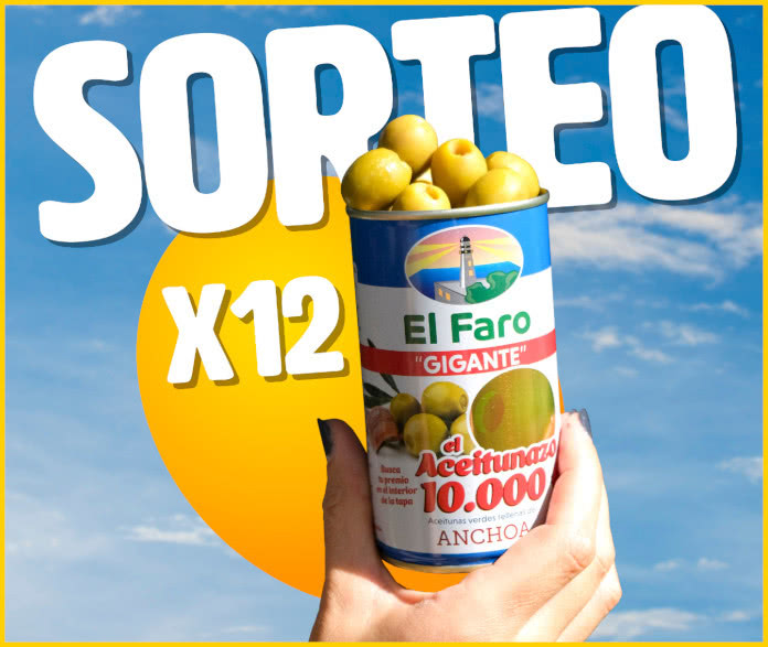 El premio de este sorteo será un pack con 12 latas de aceitunas El Faro.