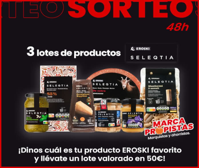 Hay 3 lotes de productos Eroski Seleqtia valorados en 50€ en juego.