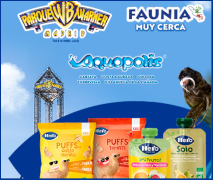 En este sorteo de Hero Baby habrá 3 ganadores y cada uno se llevará un pack de 4 entradas a parques como Warner, Faunia o Aquópolis.