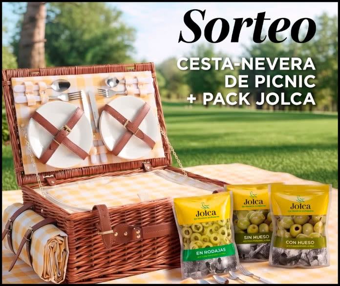 Disfruta del buen tiempo participando en el sorteo de Jolca, donde podrás ganar una cesta de pícnic con nevera para 4 personas, acompañada de un delicioso pack de aceitunas.