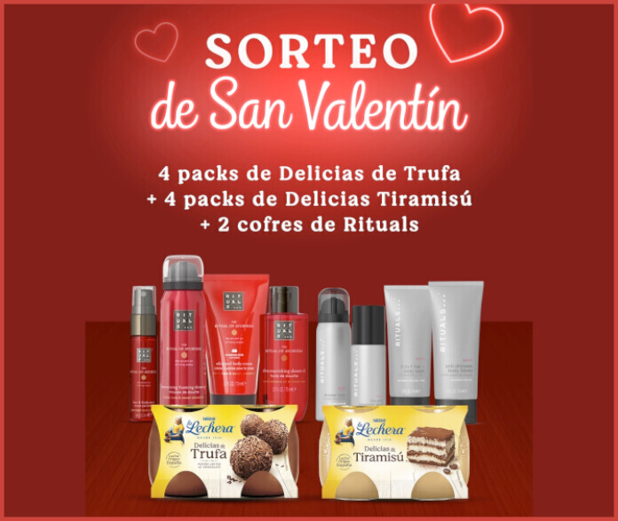 Para San Valentín, La Lechera y Rituals están sorteando 6 lotes que incluyen cofres con productos de cuidado personal y 8 packs de postres.