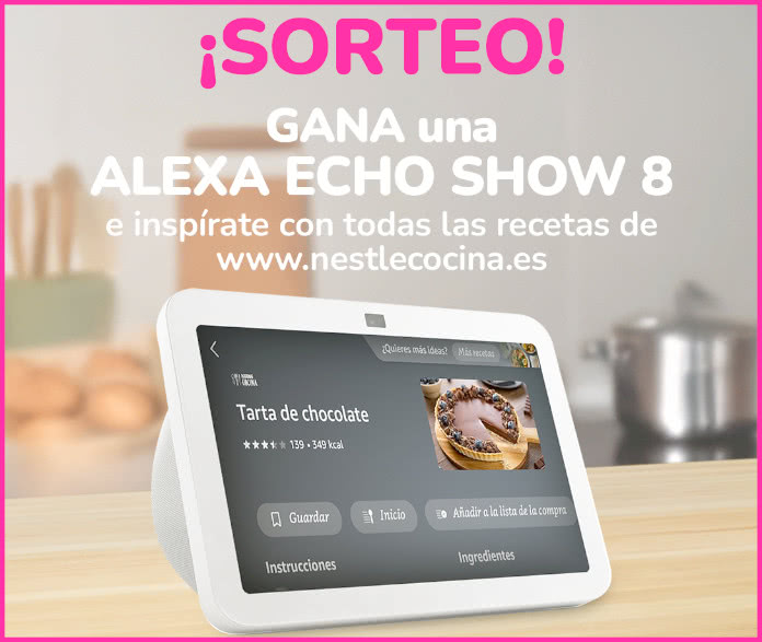 Nestlé está sorteando una pantalla táctil Alexa Echo Show 8, para que puedas seguir nuevas recetas paso a paso.