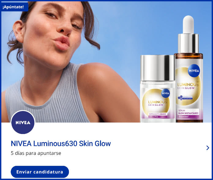 - Entra en Nivea busca 250 probadores de Luminous630 Skin Glow