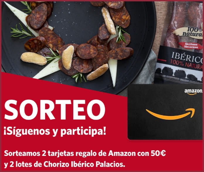 - Entra en Palacios sortea dos tarjetas 50€ de Amazon + dos lotes de chorizo