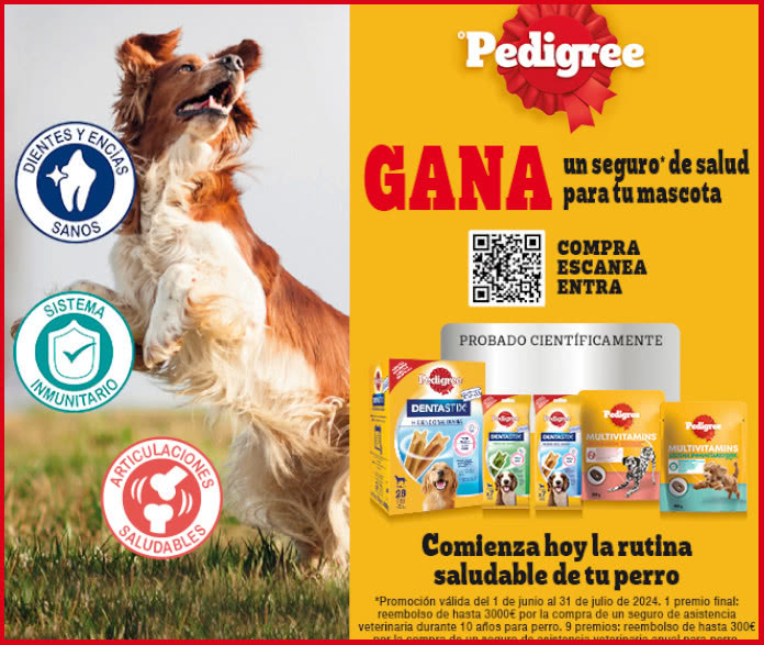 Pedigree tiene una promoción activa en la que puedes consguir un seguro de salud para perro de 300€ o 3.000€.