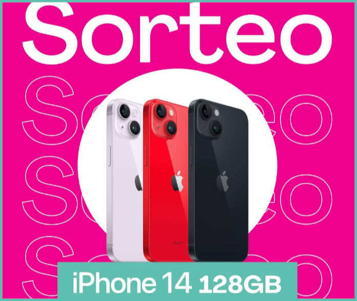 Pero lo importante aquí es que están de sorteo y podrás hacerte con un iPhone 14 de 128GB, a escoger entre color negro, rojo o púrpura.