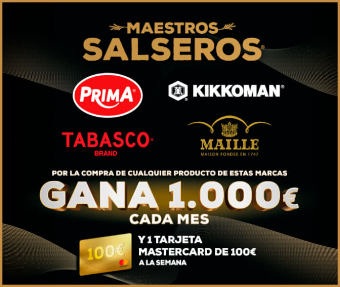 En la compra de una salsa Prima, Kikkoman, Tabasco o Maille entrarás al sorteo de 8 premios de 1.000€ y 35 tarjetas Mastercard de 100€.