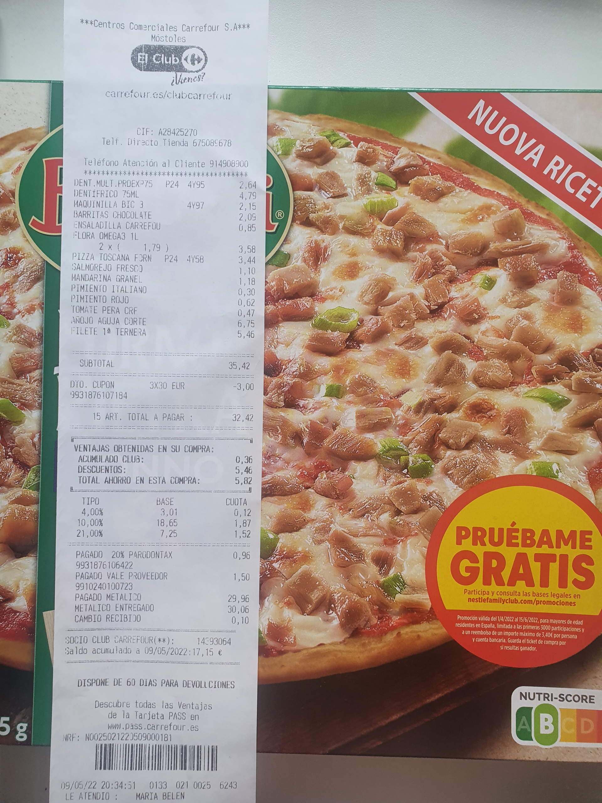 Mecánica:Compra 1 pizza Buitoni Forno di Pietra Tonno, inicia sesión o regístrate en el portal de Nestlé Family Club, rellena el formulario con tus datos personales y sube una foto del ticket de compra y del producto