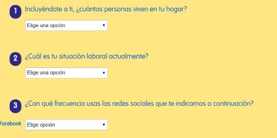 A continuación podrás responder las preguntas que te formulan sobre tus costumbres de consumo, etc.