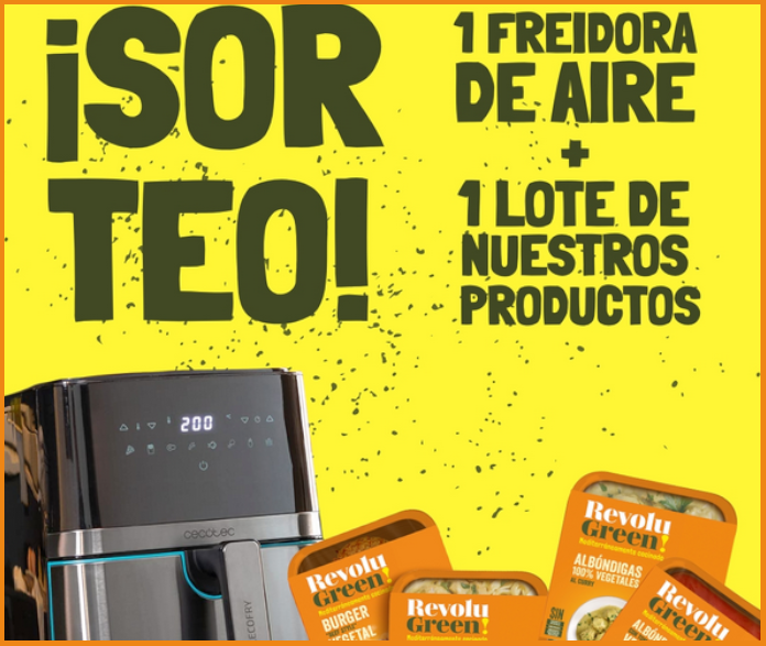 Revolugreen lanza sorteo con 2 ganadores que obtendrán una freidora de aire Cecotec + lote de productos vegetales.