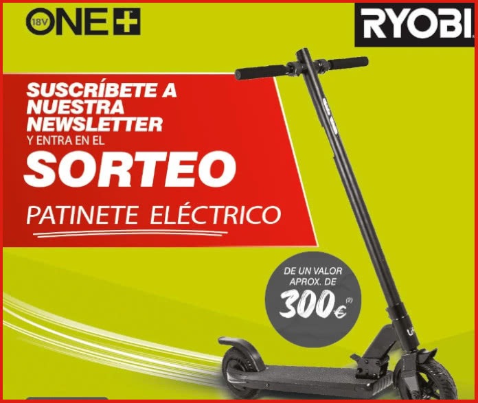Si te unes a la newsletter de Ryobi, puedes acceder al sorte de un patinete eléctrico, valorado en 300€.