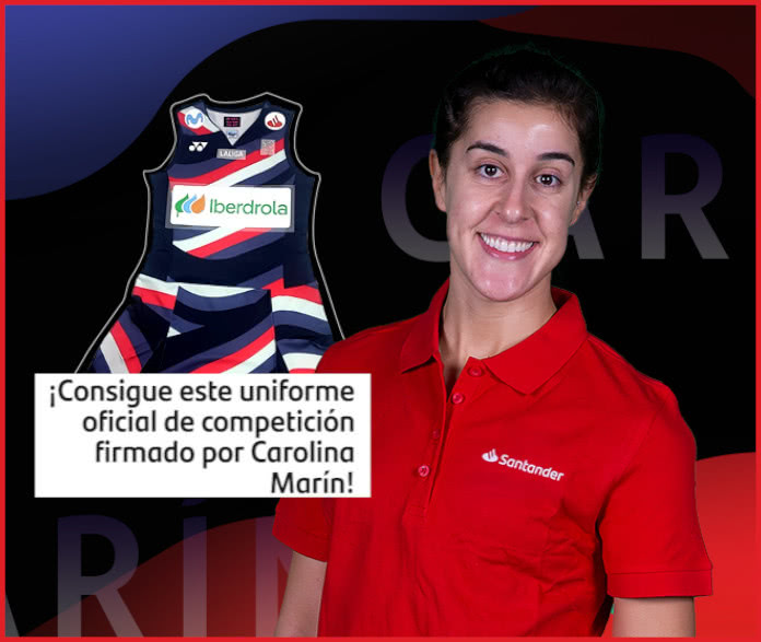 Nuevo sorteo de Santander, el premio será un uniforme de bádminton firmado por la deportista Carolina Marín.
