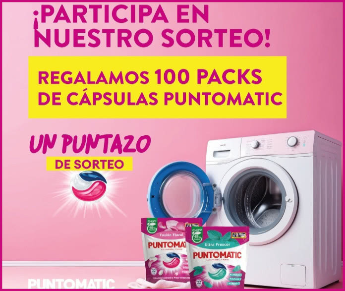 Atención, sorteo con 100 ganadores que recibirán un pack de cápsulas Puntomatic para lavar la ropa.