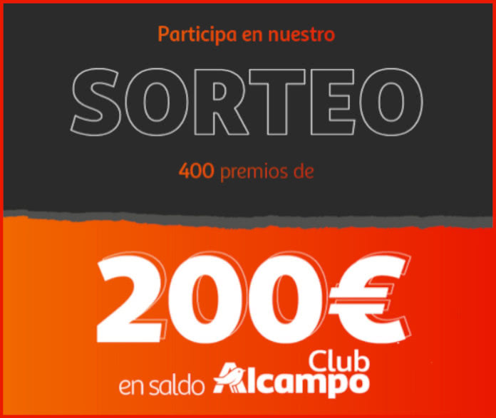 - Entra en Sorteo 400 premios de 200€ de saldo en Alcampo