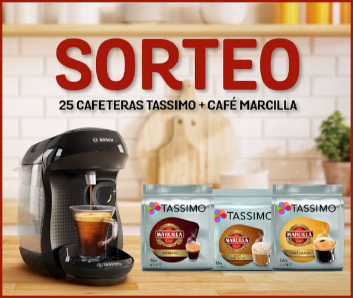 Tassimo te sorprende con 25 premios exclusivos: Cada ganador se llevará una cafetera acompañada de un pack de café Marcilla.