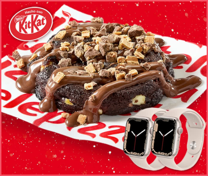 Se trata de una galleta con tres chocolates (blanco, negro y de leche), salsa de chocolate y trozos de KitKat, el postre perfecto para después de una buena pizza.