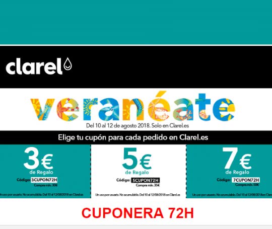 Hay tres cupones de descuento para comprar en CLAREL ¡me gusta la propuesta para el verano! Eso sí, tendrás que apresurarte porque la propuesta va hasta el 12 de Agosto ¡tienes un día!