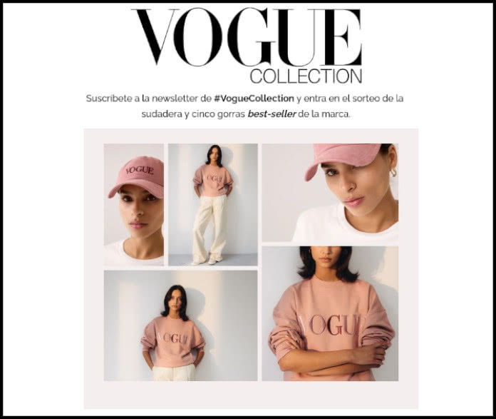 No te pierdas que al suscribirte a la newsletter de Vogue Collection, puedes participar en el sorteo de una sudadera y 5 gorras.